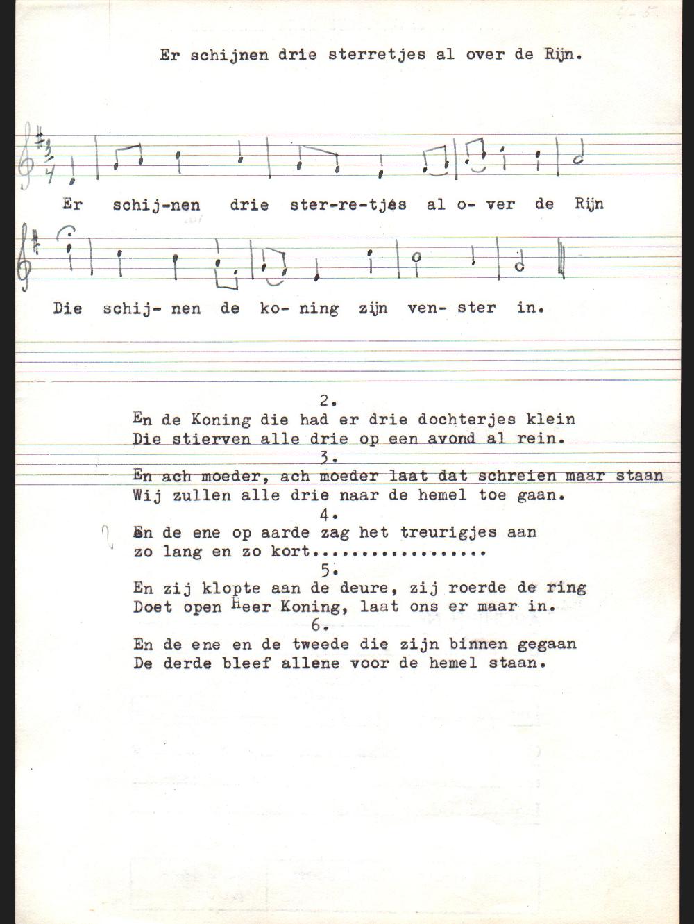 Er schijnen drie sterretjes al over de Rijn / Die schijnen de koning zijn venster in